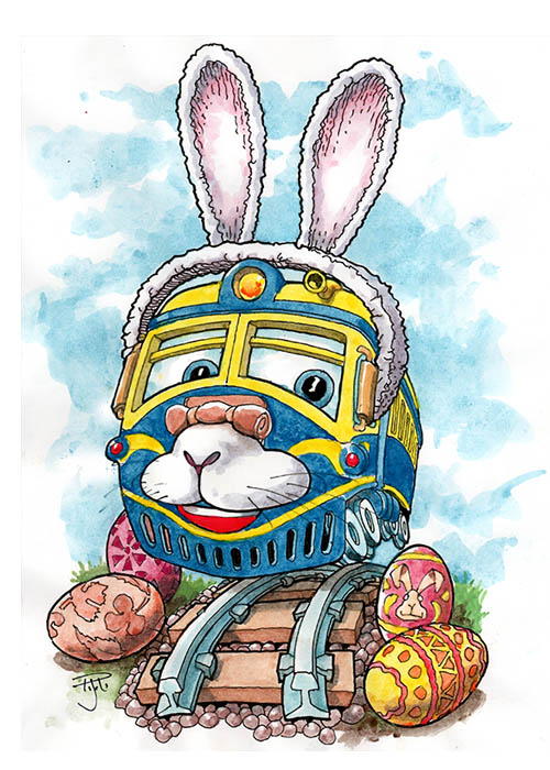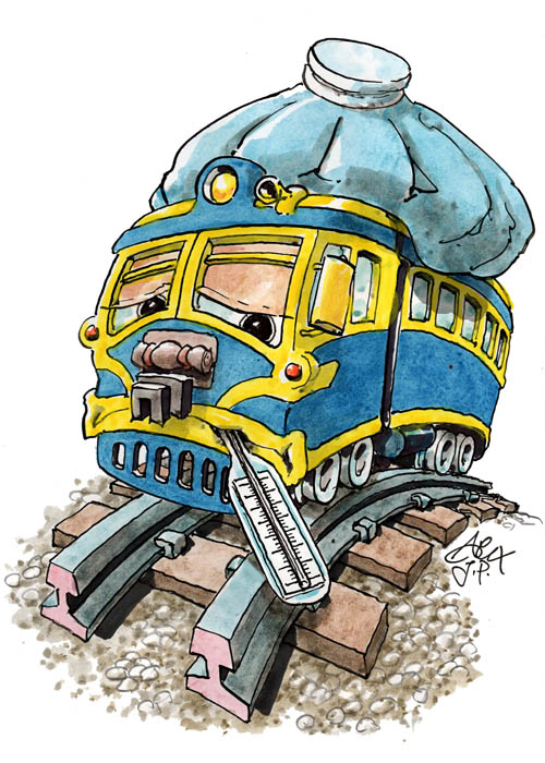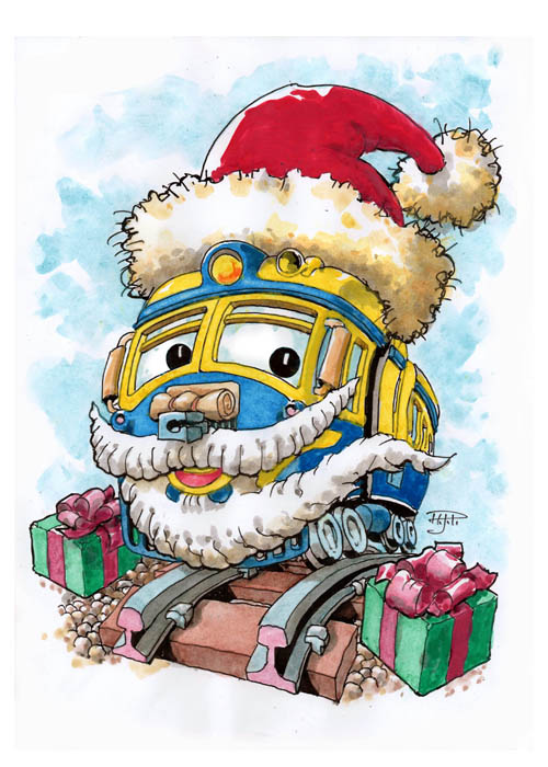 Risbe za priložnostne spominke, kot so razglednice in magnetki, na muzejski železnici v dolini reke Yarra.